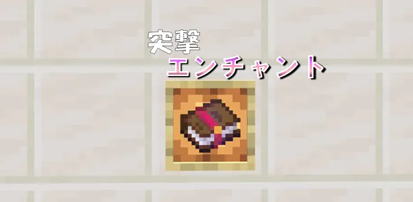 エンチャントテーブル付与可能エンチャントテーブルで直接槍に付与することが可能です。本をセットし、突撃のエンチャントの本を作成することも可能です。