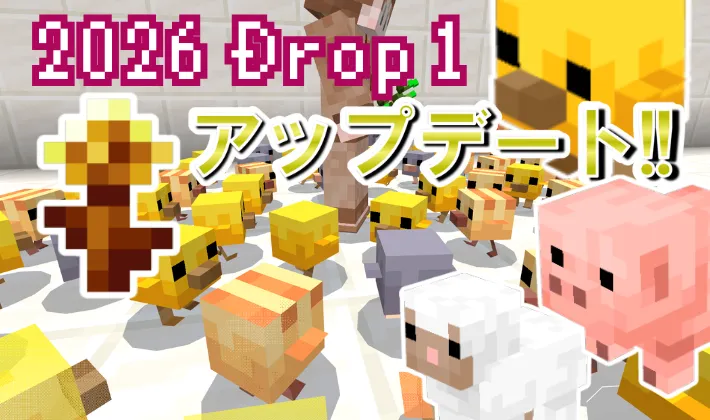 2026 Drop 1の内容はこれまでにプレビューやスナップショットで公開され、子どもモブの見た目変更、子どもモブの成長を止める金のタンポポなどがリリースされます。