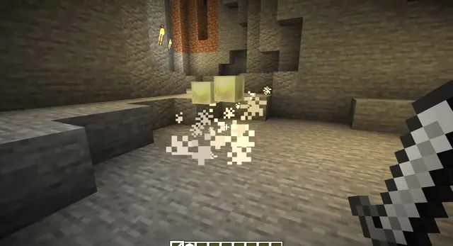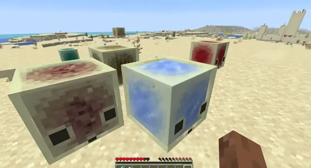 ブロックを吸収したサルファーキューブは動きを停止することができ、叩くと吸収したブロックの特徴を表現した動きをします。